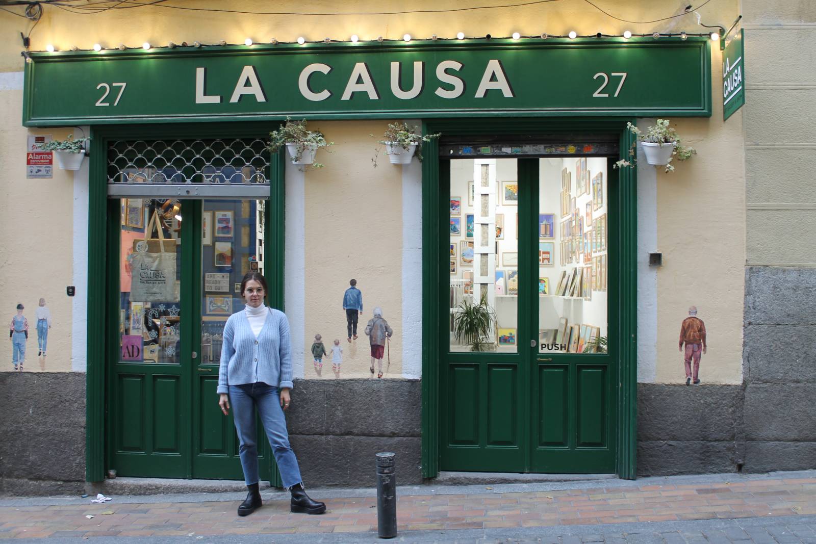 En Barcelona, la entrevistada trabajó en el comisariado de una exposición que le obligó a enfrentarse a la producción cultural actual. A estar al día de todo lo que está pasando. «Yo venía de estudiar el pasado, lo canónico, y descubro las voces y los lenguajes de hoy», comenta Medina. Es en ese momento cuando «le entra el gusanillo» de ser su propia jefa y —casualidades de la vida— recibe una llamada de su padre que hace que nazca la galería. «El local donde está LA CAUSA era mi casa. Yo crecí aquí con mi padre». Él decidió marcharse a vivir a otra zona de Madrid porque la casa «se le quedaba grande» y le planteó la posibilidad de abrir un negocio. «Pablo y yo tardamos tres días en decir que sí», relata la galerista.