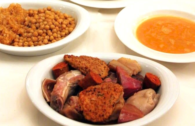El cocido madrileño es un plato típico de la gastronomía madrileña y va repleto de ingredientes que aportan su sabor al caldo, potente y delicioso, con el que se prepara una sopa de fideos que da inicio al festín. Se sirve en los tradicionales «vuelcos», que suelen ser tres: el primer vuelco la sopa del caldo con los fideos, el segundo vuelco los garbanzos con las verduras y por último las carnes.