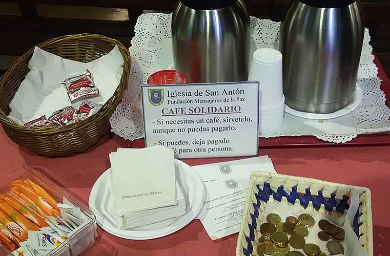 La también conocida como Real Iglesia de San Antón da alimentos y acogida a las personas sin hogar, servicios que según indican, no dejaran de ofrecerse: «los servicios del restaurante Robin Hood seguirán prestando como hasta ahora». Lo único diferente en el servicio es que las personas recibirán las raciones en tuppers y se los llevaran para «evitar aglomeraciones».
