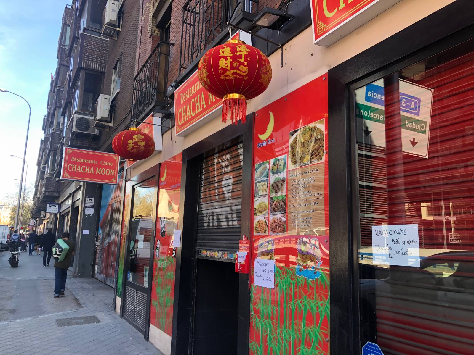 Persianas bajadas, cierres echados, y prácticamente todos los locales regentados por comerciantes chinos cerrados a cal y canto. Los casos de coronavirus en la comunidad madrileña se han multiplicado de forma masiva en cuestión de horas, por lo que han comenzado a producirse cierres de tiendas de alimentación, típicas de la capital, en las que los comerciantes son de nacionalidad china. Mientras que algunos han improvisado equipos de protección para evitar el contagio, sirviéndose de cortinas de plástico y guantes de látex, otros han decidido colgar un cartel de «cerrado por vacaciones».