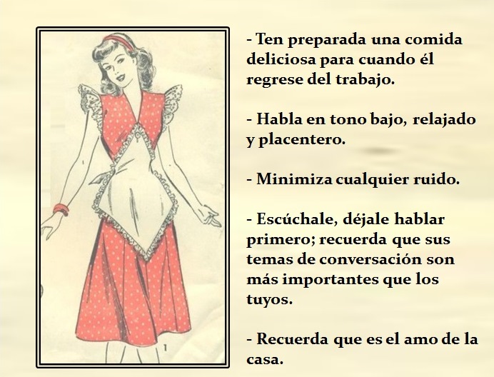 En 1958 se publicaban en España los principios que establecían el rol de la mujer, entre ellos: