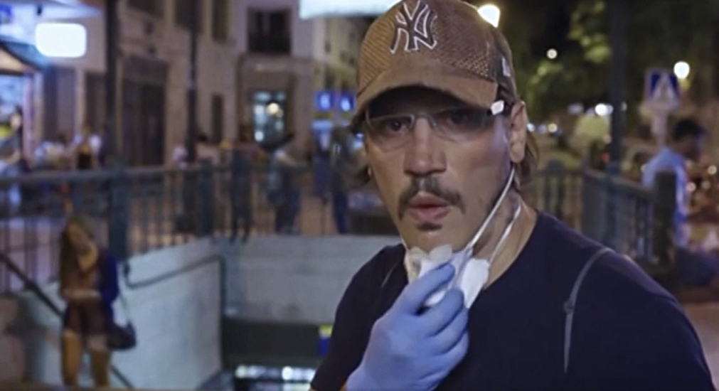 En el papel de conspirador, Peris-Mencheta aparece en la película — rodada en un admirable plano secuencia— interrumpiendo la emisión de un reportero que intenta sonsacar alguna declaración a la esposa del ladrón de cuello blanco de turno. Repentinamente, un tipo ataviado con mascarilla en el cuello y unos guantes de plásticos consigue ocupar el plano de la cámara que graba a la apurada señora por las preguntas; en ese momento el espontáneo inicia un monólogo para unos predictivo, para otros casuístico, de cualquier manera precipitadas verdades desveladas de lo que ha ocurrido durante este año 2020: