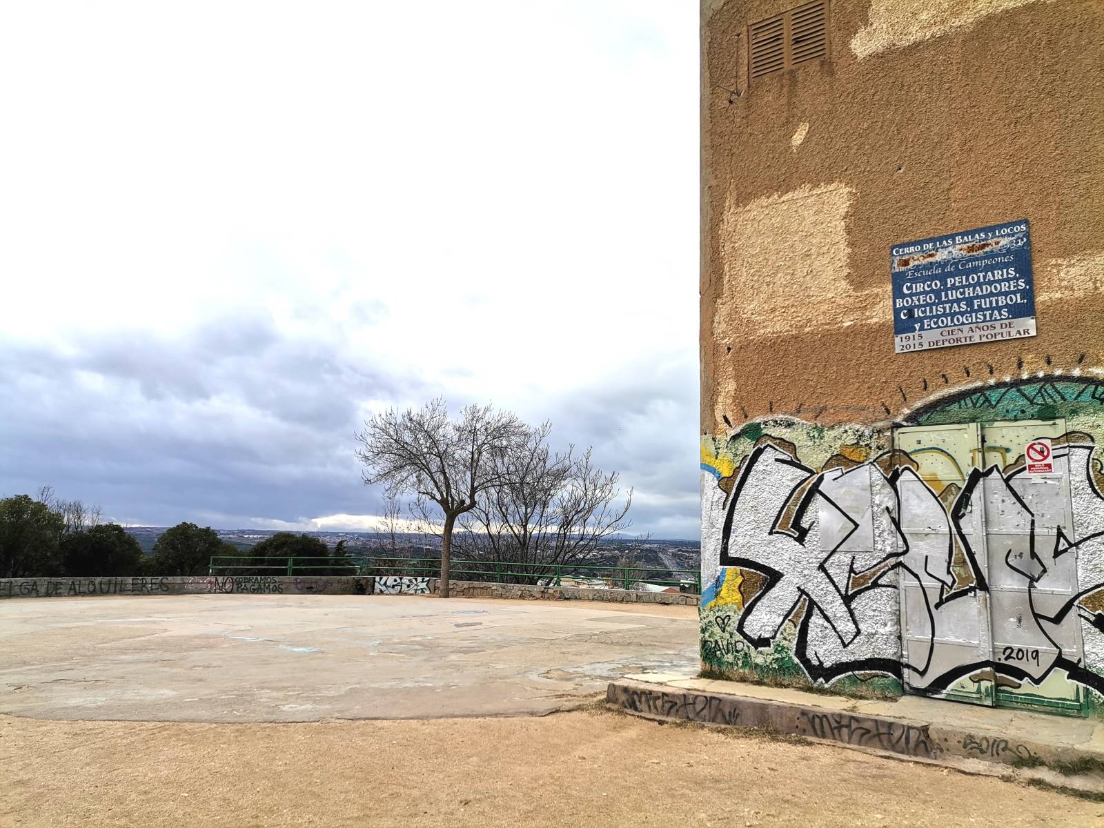 Como despedida, un último vistazo desde el Cerro de los Locos. En la actualidad, solo queda una torre de telecomunicaciones grafiteada, el silencio y las vistas, pero en su día fue el punto de encuentro de toreros, boxeadores, deportistas y atletas, que acudían a este punto para entrenar hasta perder la cabeza.