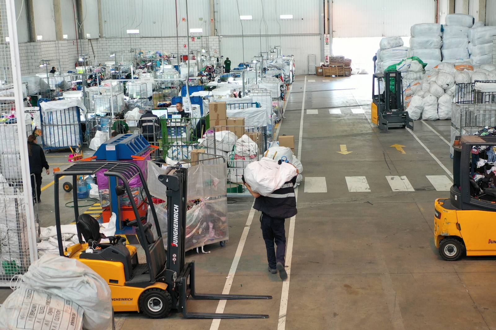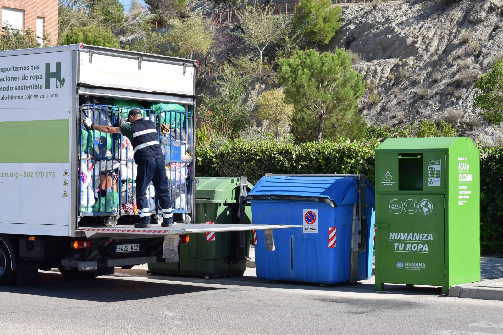 Su trabajo comienza en la calle. Gracias a unos contenedores en los que cualquier persona puede depositar prendas o calzado, recogen grandes cantidades de ropa. Esta posteriormente pasa a una de las dos grandes naves, una ubicada en Leganés (Comunidad de Madrid) y otra en L’Ametlla del Vallès (Barcelona), donde se realiza un proceso de clasificación para decidir si se destinará a la red de tiendas Humana — 48 en total —, si se venderá a otras empresas de reciclaje, o si por su desgaste no se puede reutilizar y deberá ser desechada.