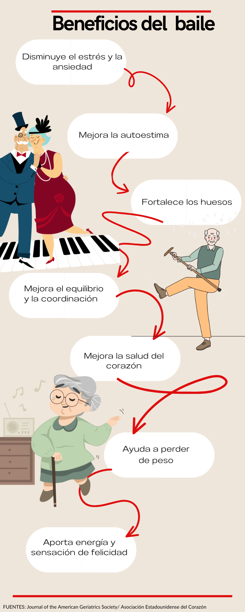 A esa conclusión llegaron por medio de una intervención con 54 adultos mayores que llevaban una vida sedentaria, que durante 4 meses practicaron danza. Los resultados fueron contundentes en la mejoría del estado físico, mental y social de las personas, ha destacado la Asociación Estadounidense del Corazón.