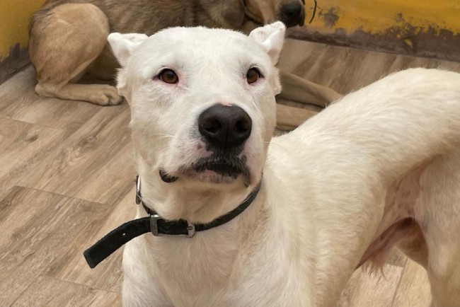 A Olmo le salvó la vida una incautación del Cuerpo de Agentes Forestales. Fue rescatado junto a un centenar de animales que estaban comiéndose unos a otros, entre cadáveres y peste. Solo su apellido, Guna, y sus orejas, que mantiene erguidas por los cortes, avisan del pasado infernal de este peludo, que en enero cumplió cinco años, estiman sus cuidadores de Alba Protectora. Lo equivalente a cuatro décadas de un humano. Es juguetón, cariñoso y no necesita largos paseos, porque todavía se pone nervioso en ambientes abiertos. «Pero es guapo y educado, la compañía perfecta», asegura Carolina Corral, voluntaria de la organización, mientras muestra las fotografías de estudio que el fotógrafo de perros ha sacado a Olmo con el objetivo de que encuentre un hogar.
